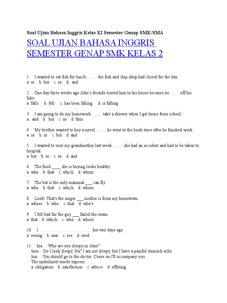 Ide 49 Soal Ujian Bahasa Inggris Semester Genap Kelas 11 Terbaik Simpel Dan Elegan, Soal Ujian